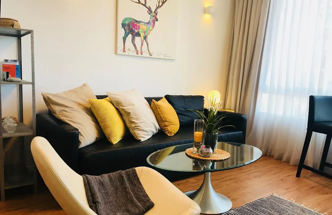 Ensuring a comfortable stay, the in-room comforts include sound-proofed windows, as well as high-speed internet and a TV with satellite channels and comforts such as an ironing set and air conditioning. The accommodation is also furnished with a sofa set and a work desk. Beds fitted with plump-down pillows are at guests' disposal. For added convenience, a bath and a shower are available at the apartment. Moreover, there are a hair dryer and bath sheets as well.